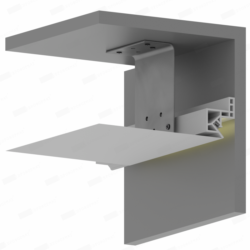 Универсальный теневой профиль с эффектом парящего потолка. Зазор 16,5 мм. Оснащен креплениями под уголки для удобства монтажа.